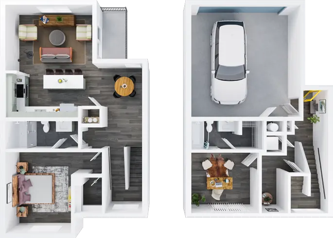 Two-story townhomes with a split bedroom floor-plan, contemporary finishes, bright, natural light, and endless luxuries throughout.